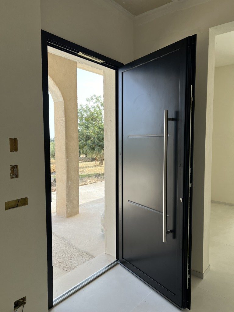 I portoncini in alluminio realizzati e installati da ER.MI INFISSI sono pensati per resistere nel tempo alle intemperie, mantenendo intatto l’aspetto estetico. Grazie alle finiture preverniciate e alla possibilità di scegliere pannelli, colori e inserti in vetro, è possibile creare un ingresso perfettamente in linea con lo stile dell’abitazione. I profili in alluminio, abbinati a vetri stratificati e ferramenta di qualità, garantiscono stabilità, funzionalità e un buon livello di isolamento termoacustico. Ogni portoncino viene realizzato su misura, per adattarsi a vani esistenti o nuove aperture.